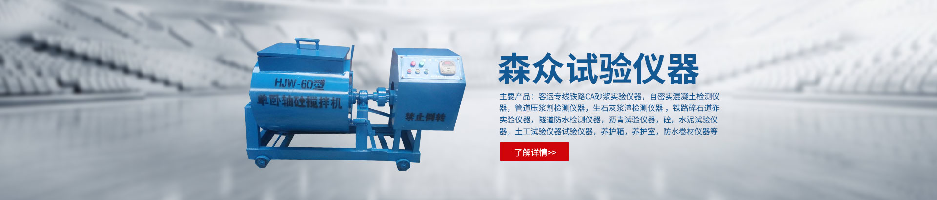滄州森眾試驗儀器有限公司是目前國內(nèi)生產(chǎn)公路試驗儀器、建筑試驗儀器的重點骨干企業(yè)。在國內(nèi)具有較高的度,檢測手段完善,技術(shù)力量雄厚。產(chǎn)品嚴格按照,國家標準設(shè)計生產(chǎn),多次在國家重點工程中標。除配套供應(yīng)試驗儀器設(shè)備外,我公司還承擔新建試驗室的規(guī)劃設(shè)計,設(shè)備選型,安裝調(diào)試,配件供應(yīng)與后勤保障等業(yè)務(wù)。主要產(chǎn)品:客運專線鐵路CA砂漿實驗儀器,自密實混凝土檢測儀器,管道壓漿劑檢測儀器,生石灰漿渣檢測儀器,鐵路碎石...